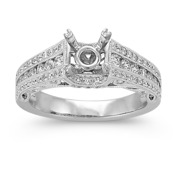 This 14k white gold Vintage Style engagement ring setting features 62 round cut diamonds to highlight the center This 14k white gold Vintage Style engagement ring setting features 62 round cut diamonds to highlight the center stone. The diamonds are Pavé set around the ... View Video